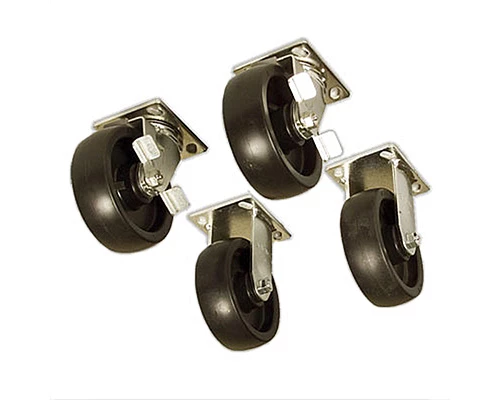 - Chaque jeu de roues se compose de deux roulettes fixes et de deux roulettes pivotantes, y compris les boulons de fixation